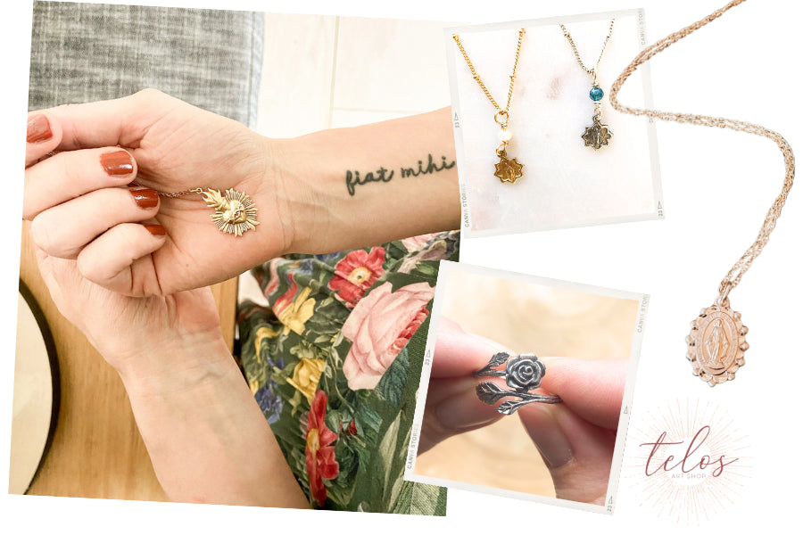 After converting to Catholicism in 2011, I found myself searching for sacred beauty in all things—especially something I could wear daily to reflect my faith, my femininity, and the timeless truths of the Church. (Not mass-produced generic designs.)