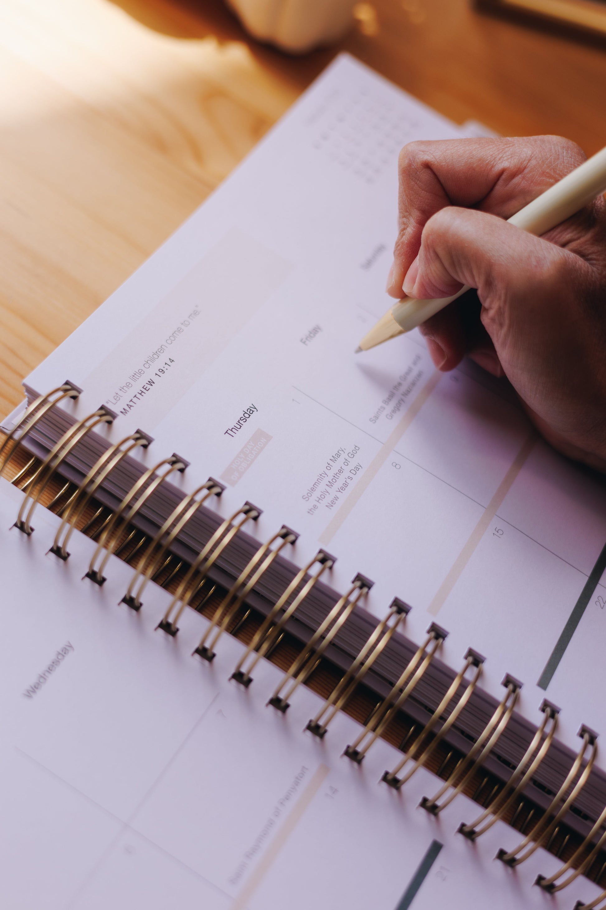 Liturgical colors used throughout the planner to remind you of the Church’s seasons