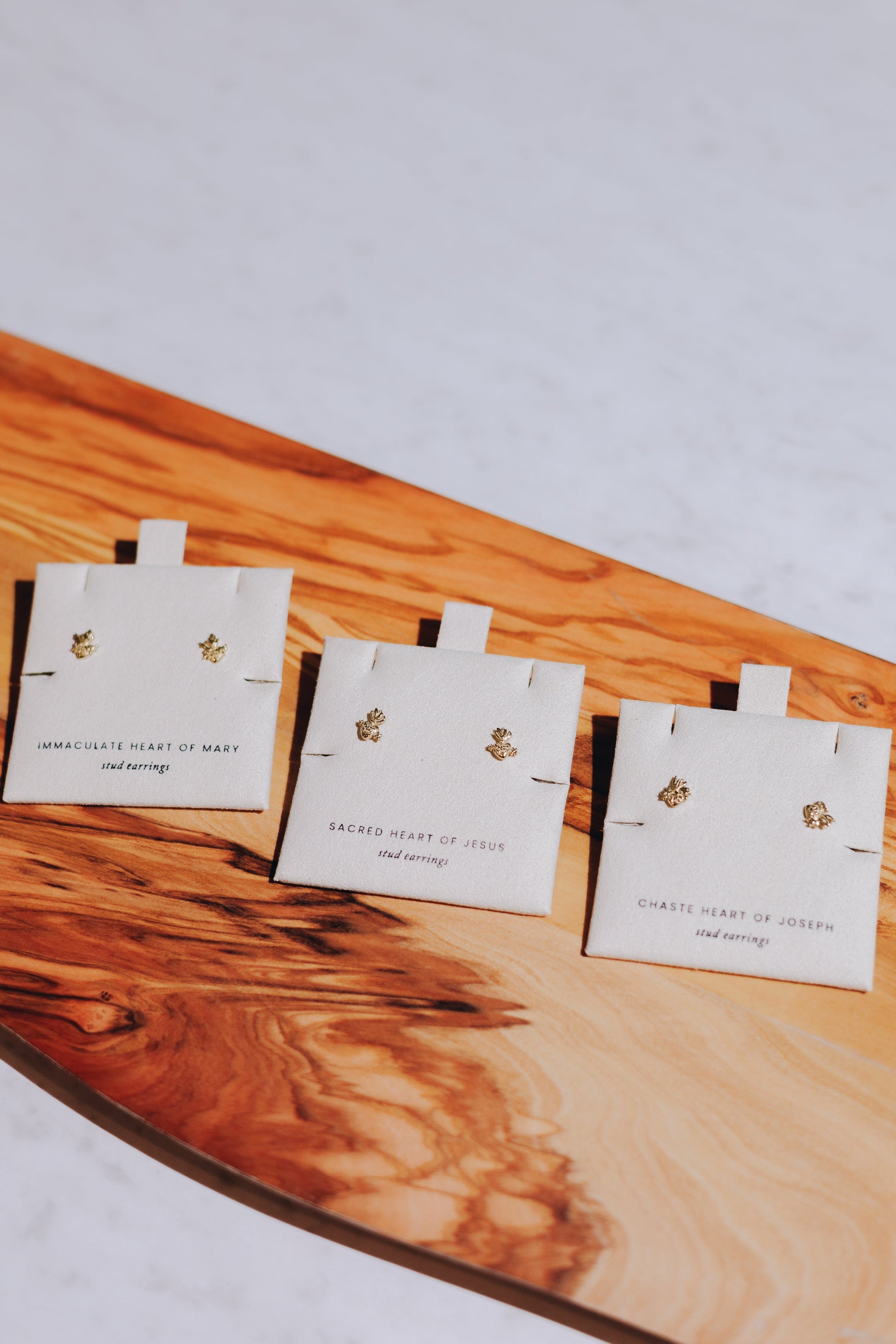 Each glance at these earrings serves as a quiet reminder of Joseph's Chaste Heart—burning with love for Our Lord.