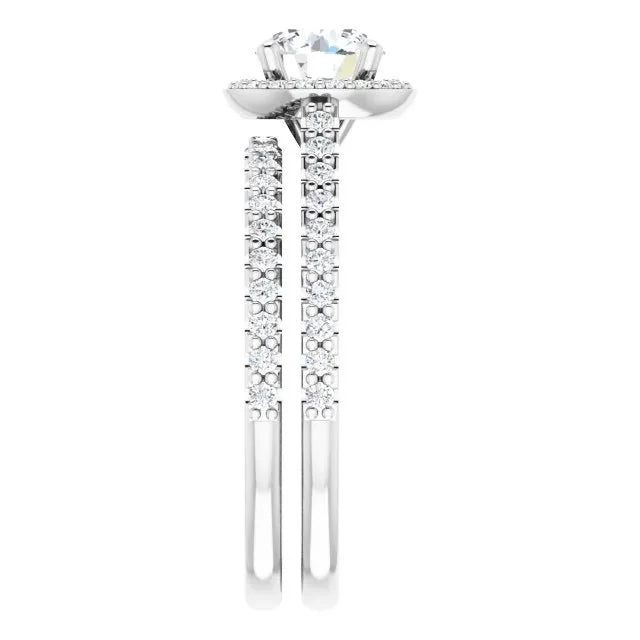 Inspire your beloved with this enchanting ring, featuring a dazzling central diamond and halo surround.