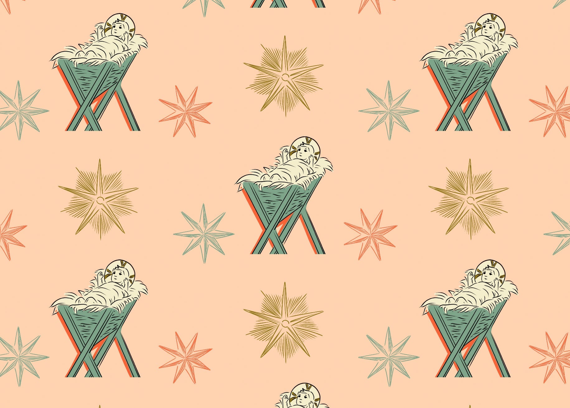 5 Jesus in the Manger Wrapping Paper Sheets