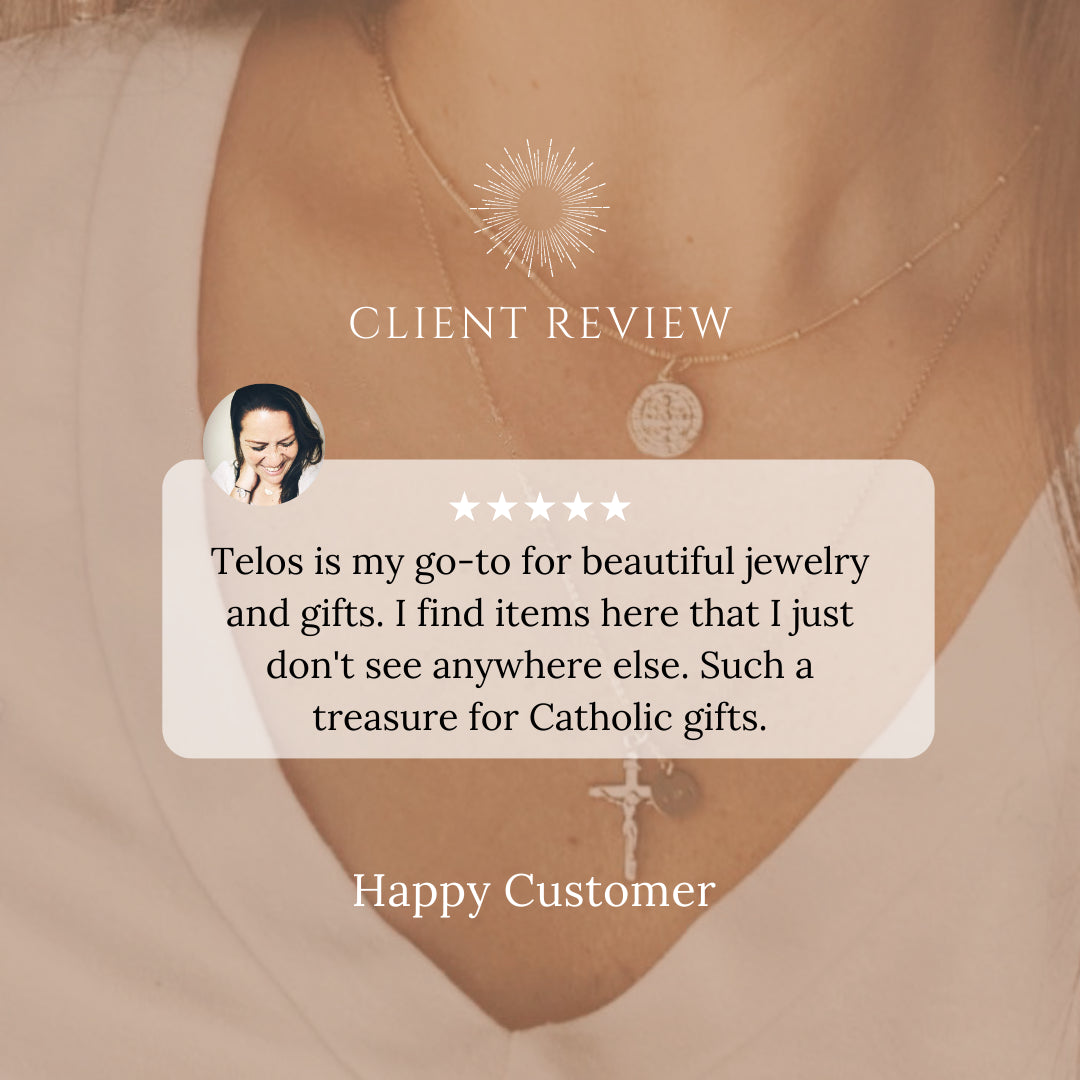 Heirloom quality Crucifix and Miraculous Medal are suspended from an 18” rope chain. Crucifix is 7/8” tall, paired with a dainty 3/8” Miraculous Medal. Both medals are made in the USA and come with a lifetime guarantee.