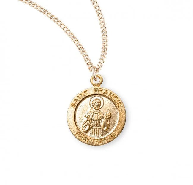 Round St. Francis of Assisi Necklace in gold over sterling silver.