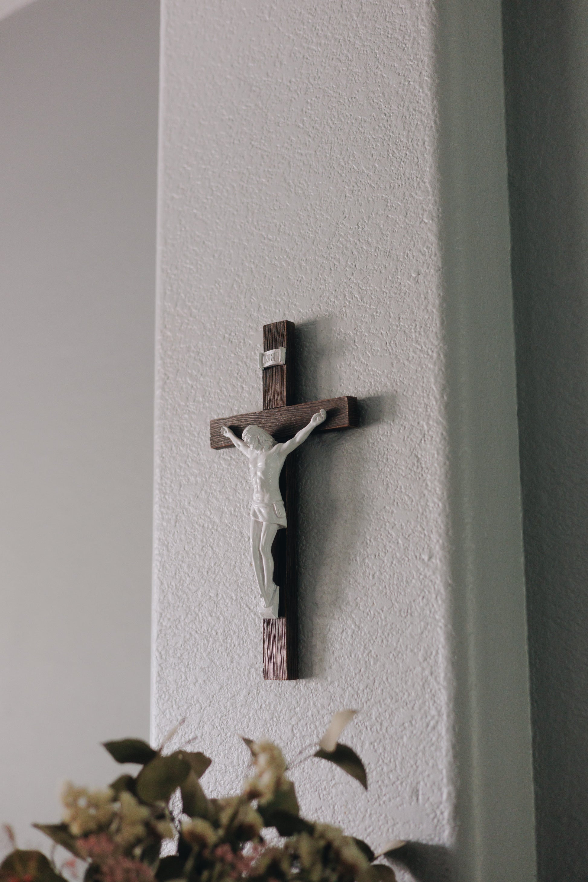 Strong Contrast – The white figure of Jesus stands out beautifully against the rich brown cross, creating a peaceful focal point.